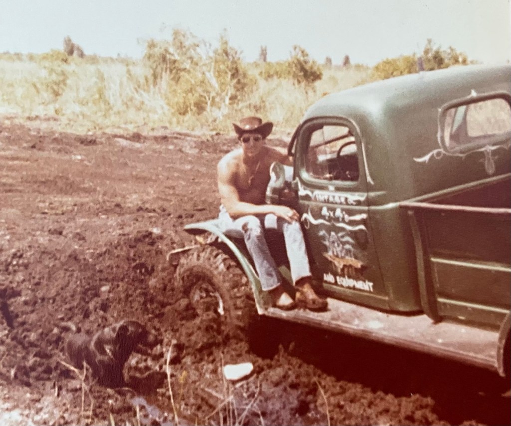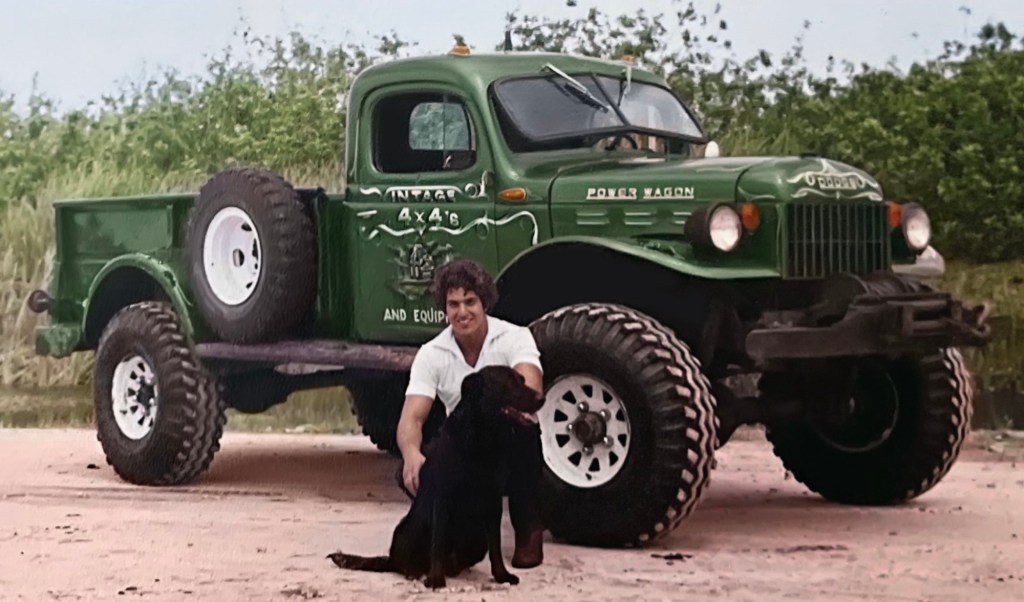 Thomas Rippy and best buddy Rip stuck in the Everglades with the 54 Dodge Power Wagon,